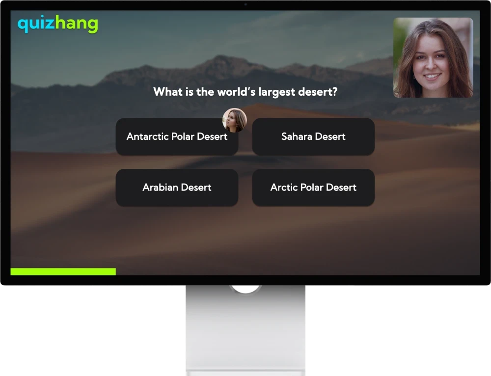 Distansarbetare bjuds in till ett quiz via ett litet och lätt avfärdat fönster. Detta är tänkt att skickas när de har fria scheman i åtminstone några minuter och inte har spelat QuizHang på ett tag.